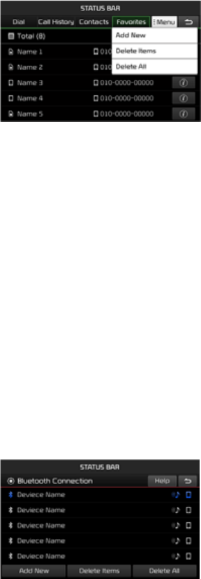Connect with Bluetooth device Select [PHONE] key in the Headunit Select [Favorites]