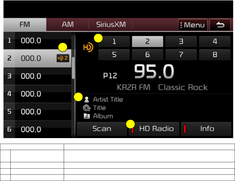 • In FM/AM mode, continuously changes the frequency until the key is released and