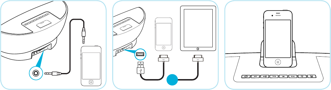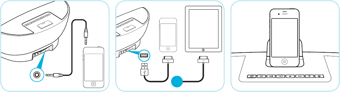 USB Apple al zócalo USB del AERA y luego a su dispositivo Apple.