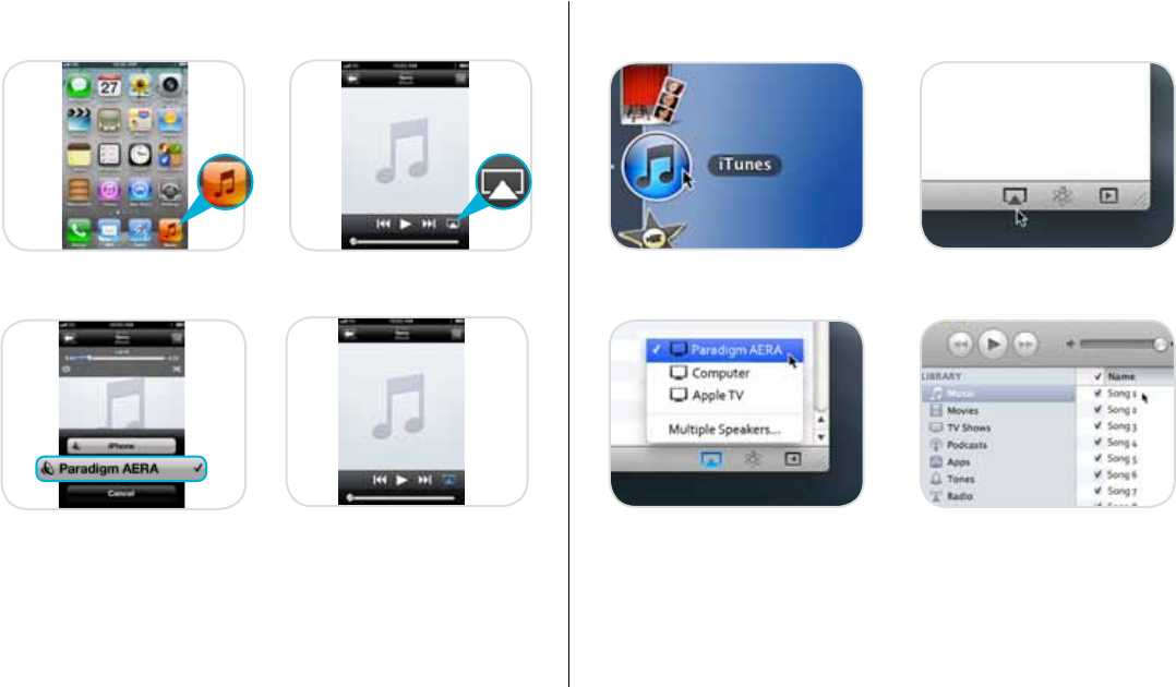 AirPlay, iPod and iPhone are trademarks of Apple Inc., registered in the U.S. and other countries. iPad is a trademark of Apple Inc. AERA is a trademark of Paradigm Electronics Inc.