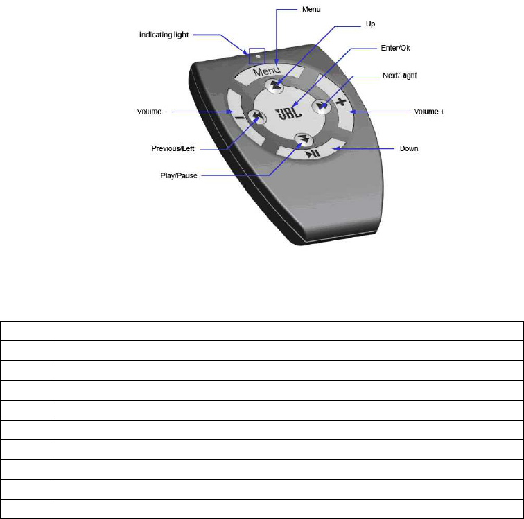 Enter/OK Long press switches EQ setting in loop and the indicating light shall Flash. The on and off