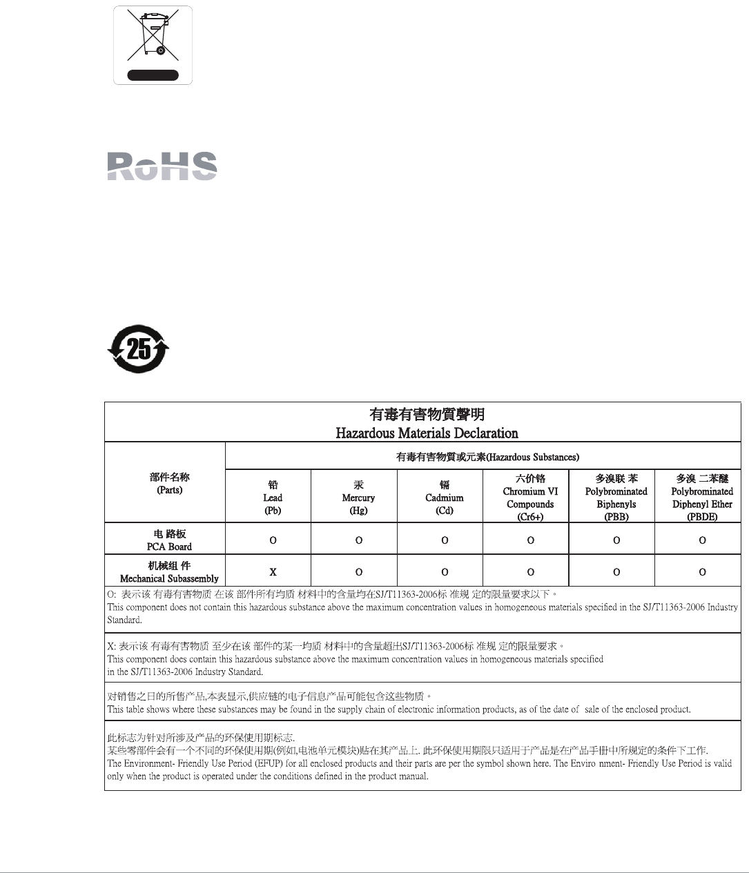 assemblies). Products and packaging will be marked with the “RoHS” label shown at the left indicating