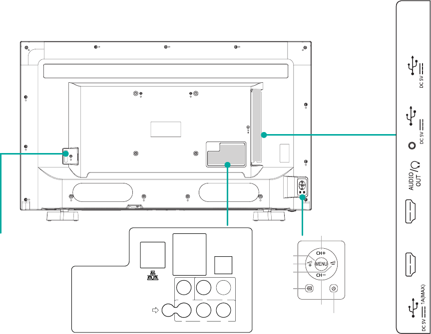 Ports 4 HDMI ports, 3 USB ports, LAN port for Ethernet, 1 Digital Audio Output, 1 RF Input, 1 Earphone Audio Output, 1