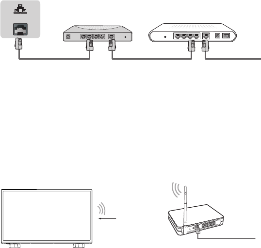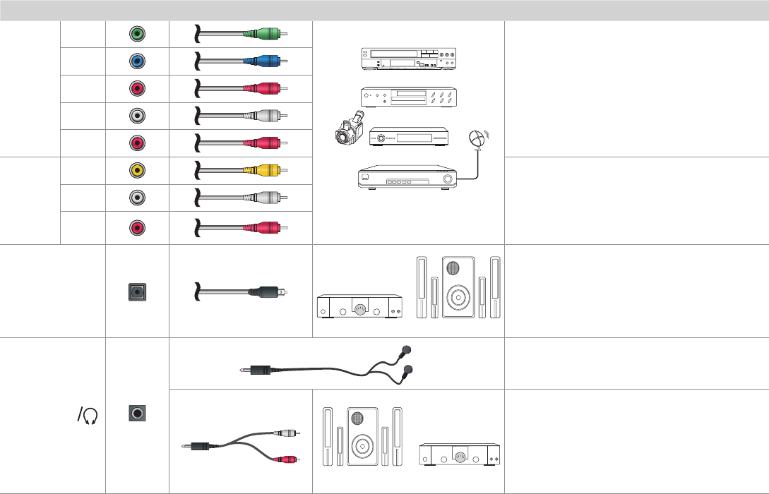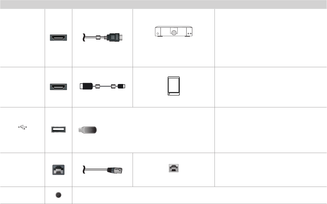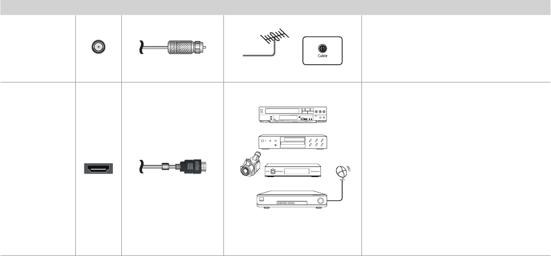 HDMI and other types of cables (not included) to connect external devices to the TV