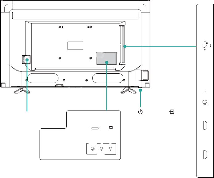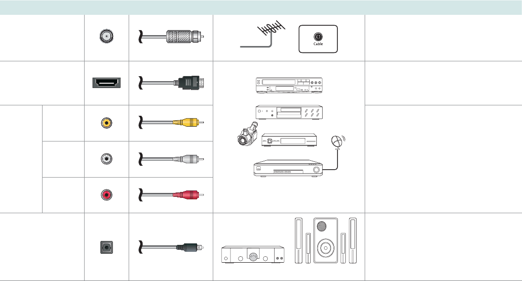 HDMI and other types of cables (not included) to connect external devices to the TV