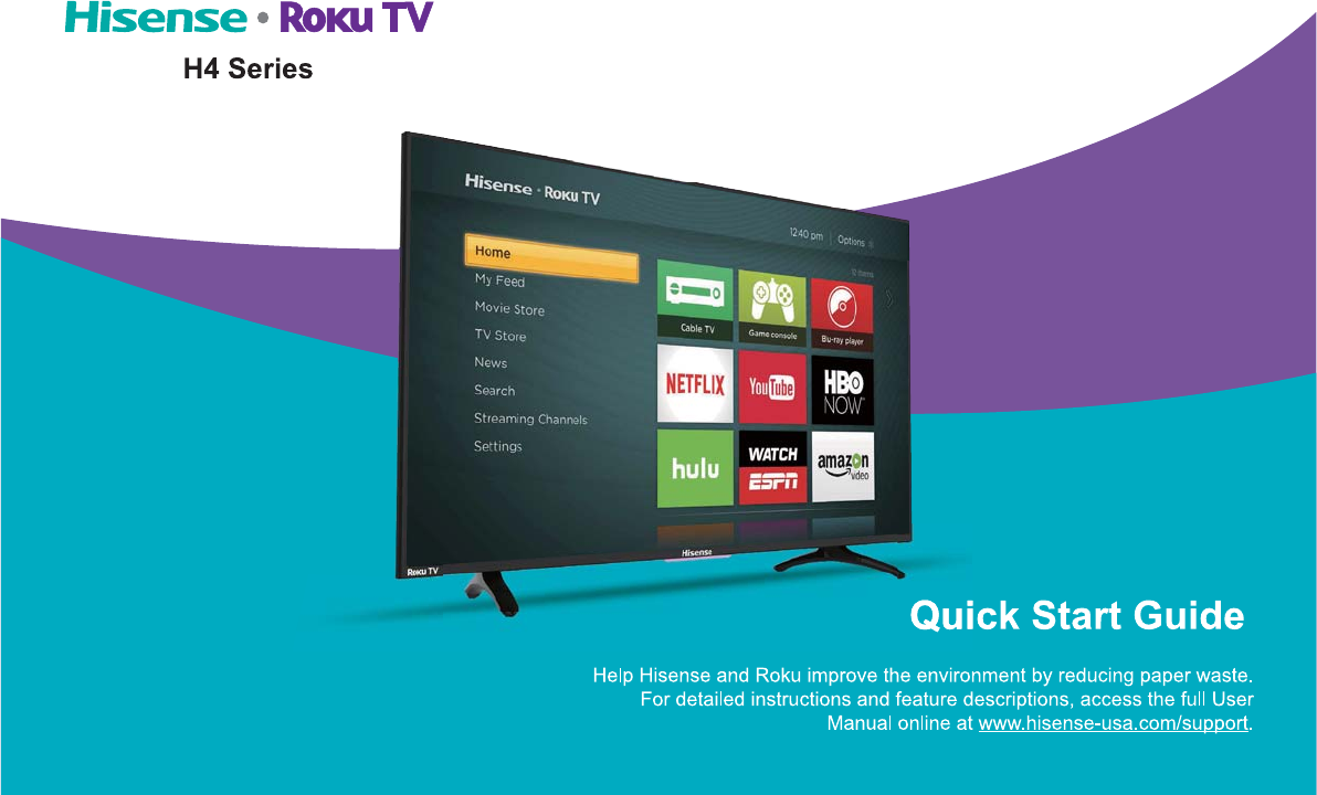 Congratulations on the purchase of your new Hisense Roku TV H4 Series! This Quick Start Guide will walk you