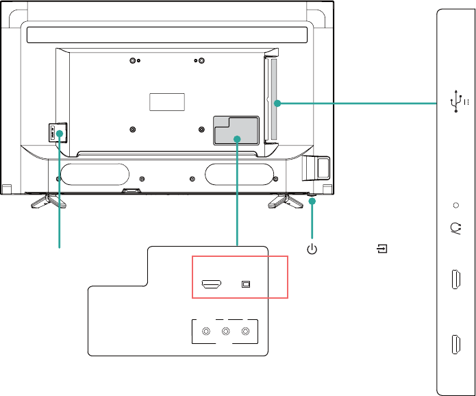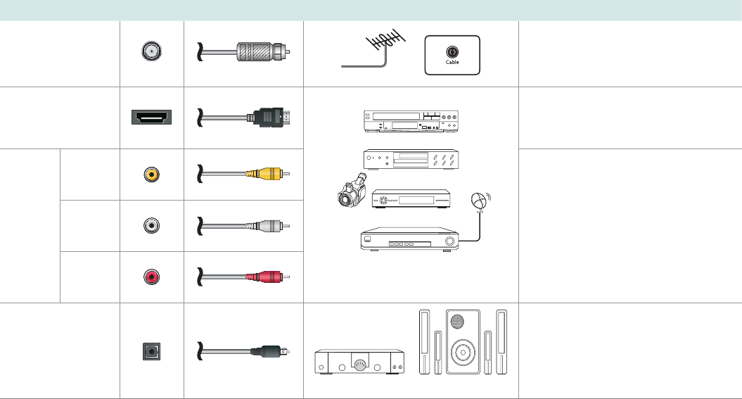 HDMI and other types of cables (not included) to connect external devices to the TV