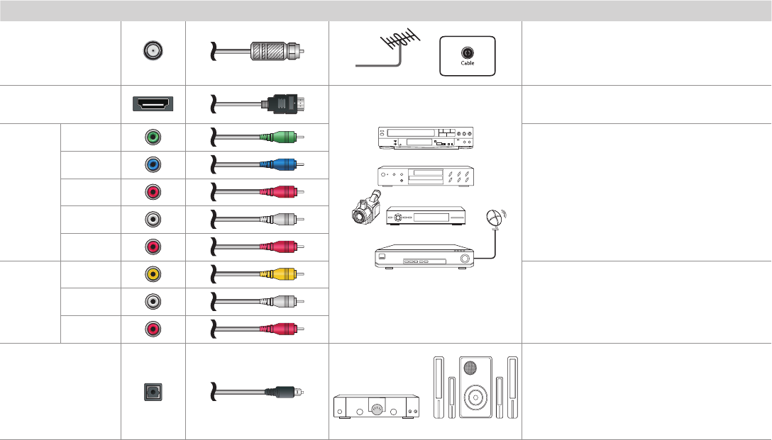 • Check for the correct output connection on the external source and for the correct input connection on the TV.