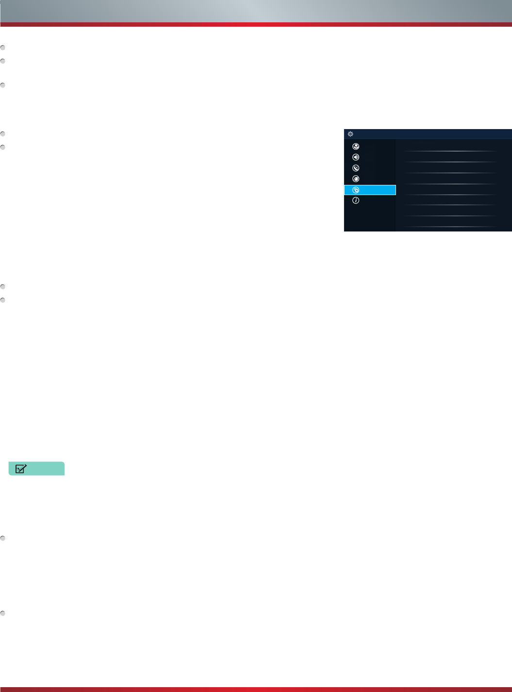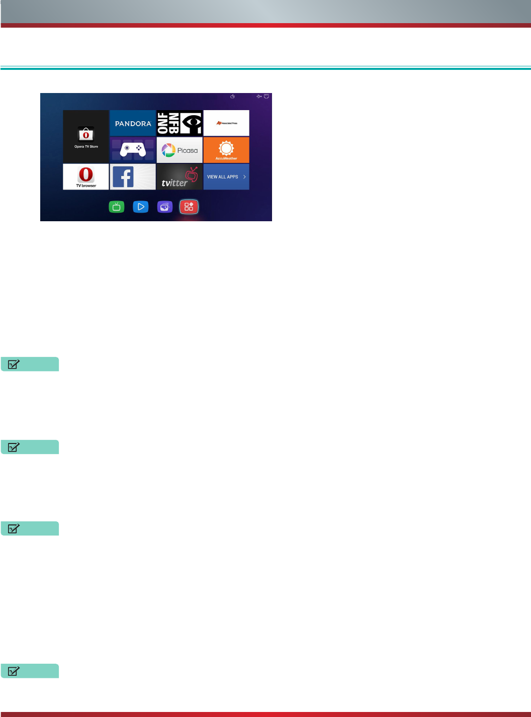 Mirroring content from your device to the TV ......................................................26