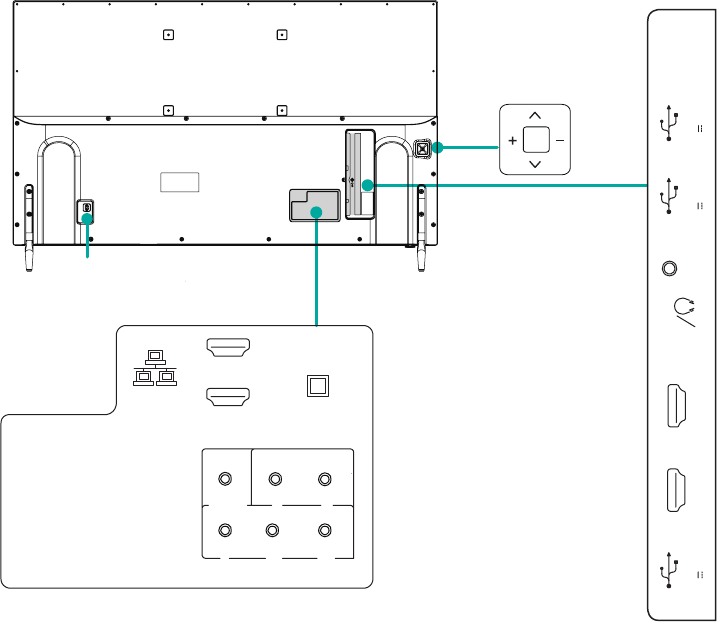 Ports 4 HDMI ports, 3 USB ports, LAN port for Ethernet, 1 Digital Audio Output, 1 RF Input, 1 Earphone Audio Output, 1