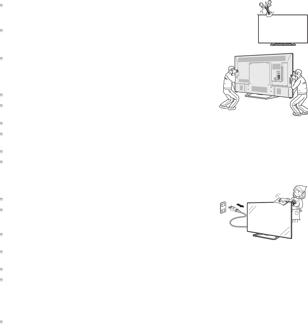 the display. Be sure to always carry the TV by two people holding it with two hands.