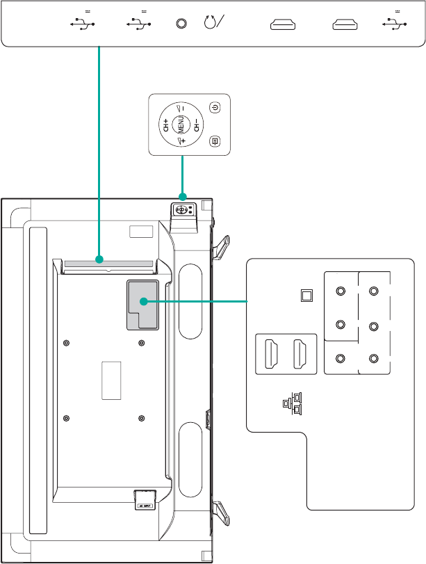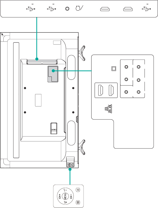Ports 4 HDMI ports, 3 USB ports, LAN port for Ethernet, 1 Digital Audio Output, 1 RF Input, 1 Earphone Audio Output, 1