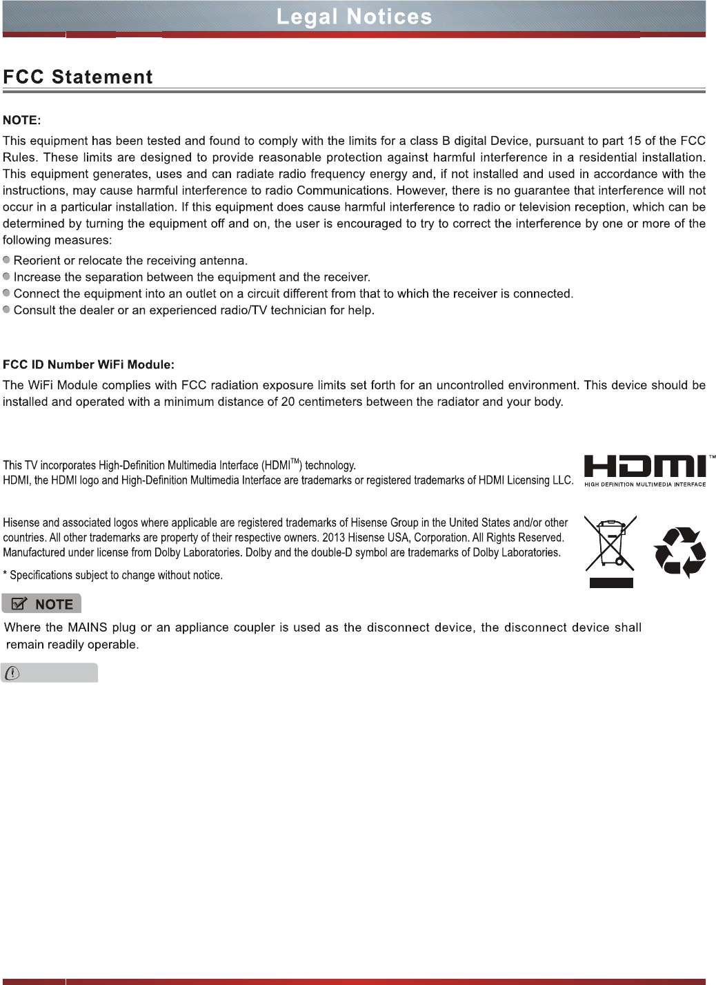 Hisense Electric LCDF0082 Part15 Subpart B-LED LCD TV User Manual