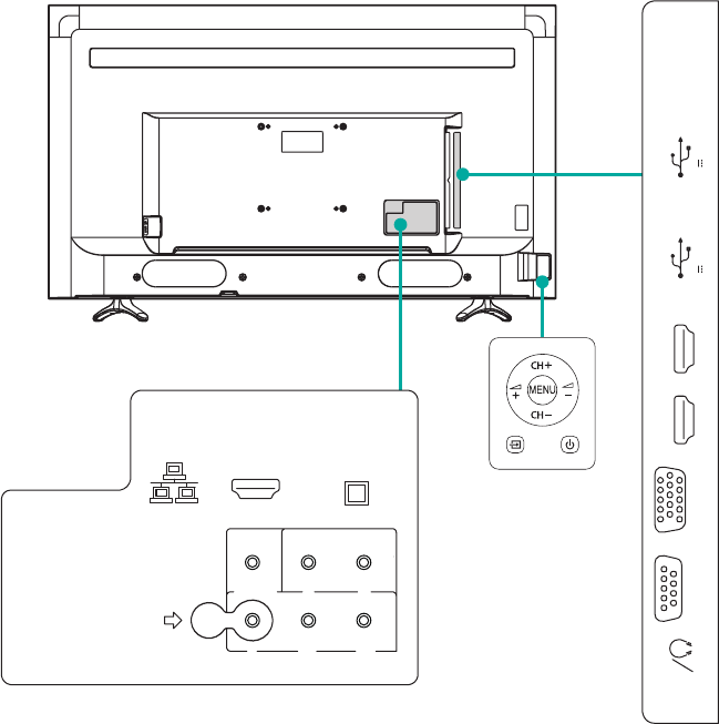 Ports 3 HDMI ports, 2 USB ports, 1 LAN port for Ethernet, 1 Digital Audio Output, 1 RF Input, 1 Earphone Audio Output,