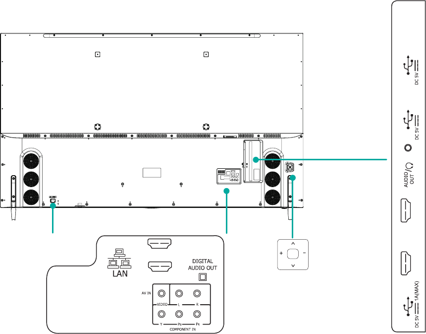 Ports 4 HDMI ports, 3 USB ports, LAN port for Ethernet, 1 Digital Audio Output, 1 RF Input, 1 Earphone Audio Output, 1