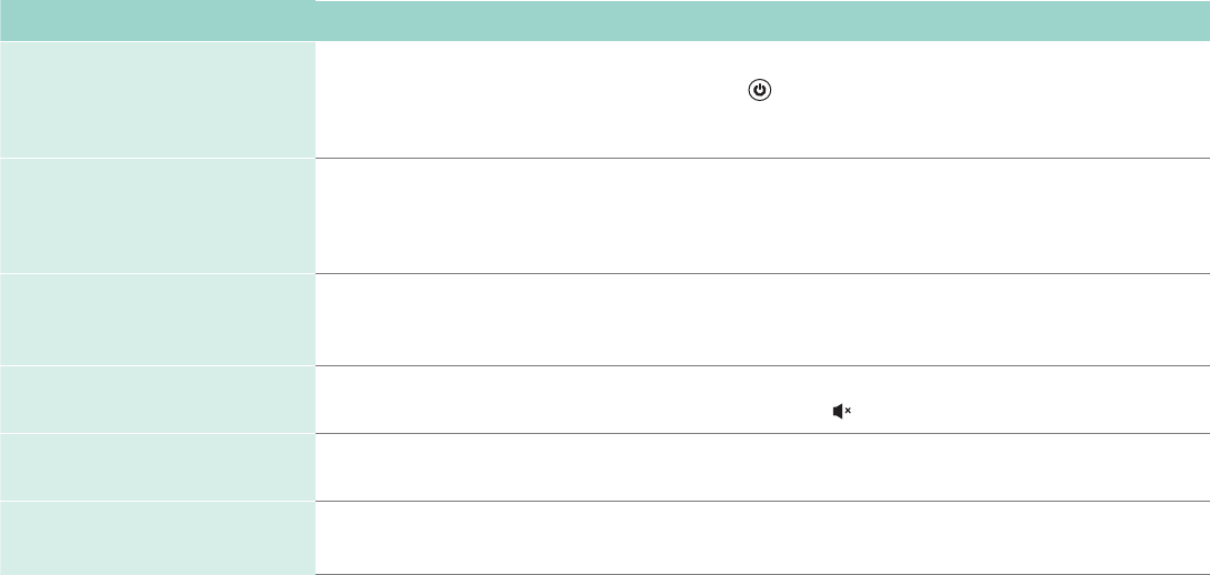 •Checkif“Mute”modeisON.TurnoffmutebypressingtheMute button again, or pressing volume up.