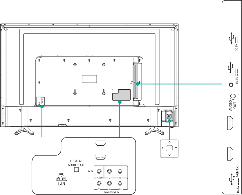 Ports 4 HDMI ports, 3 USB ports, LAN port for Ethernet, 1 Digital Audio Output, 1 RF Input, 1 Earphone Audio Output, 1