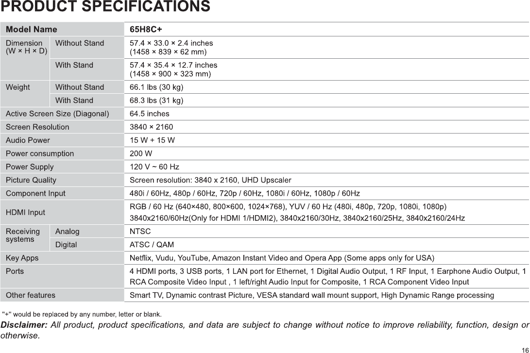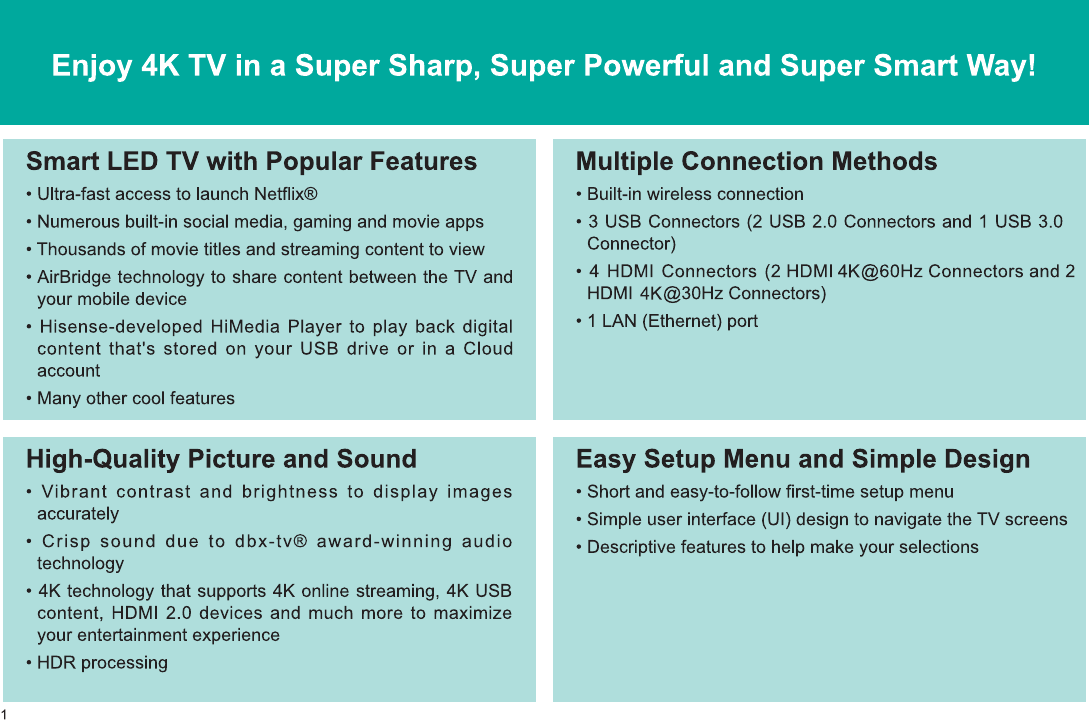 Hisense Electric LCDF0130 Part15 Subpart B-LED LCD TV User Manual HU65K5503UW 0001