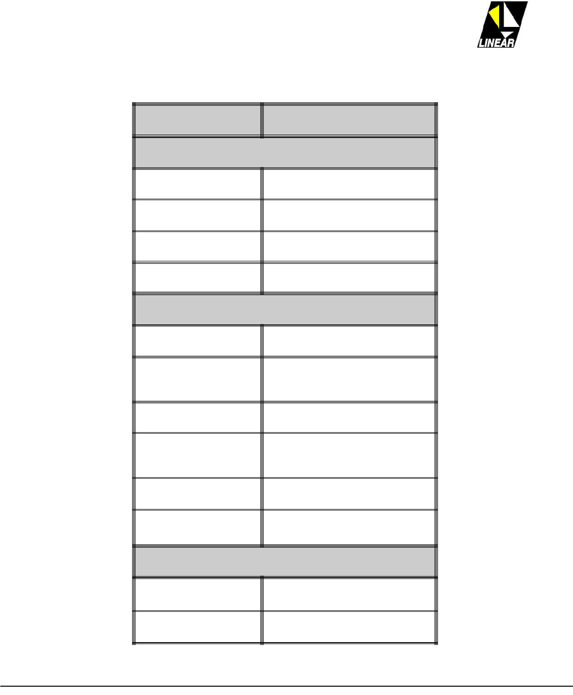The technical information presented on this manual is sole intellectual propriety of LINEAR
