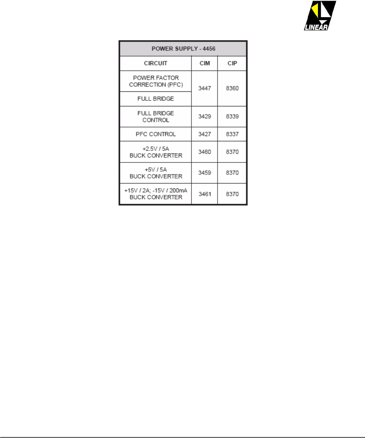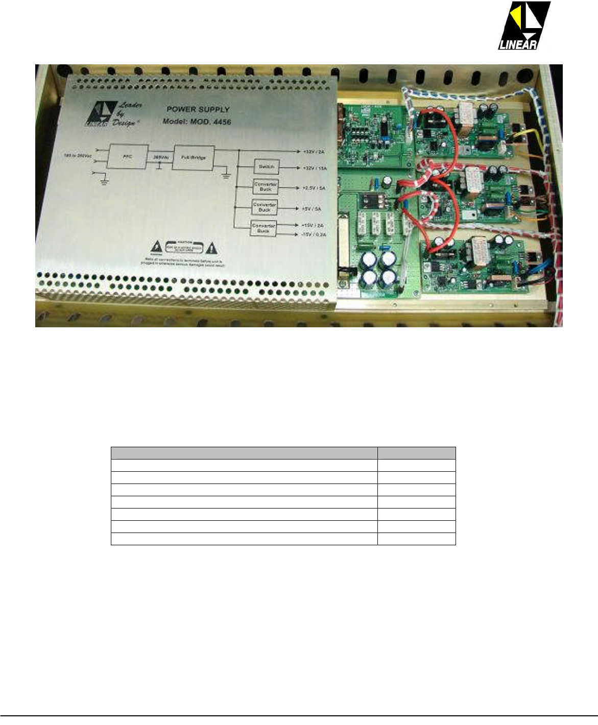Table 2 - Module 4456: Listing of Voltage and current, per each power supply.