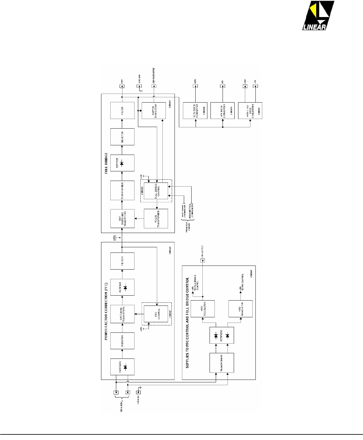 In the ADVANCED TV line all DC power supplies uses a switching technology, type full-bridge powered by 208 up