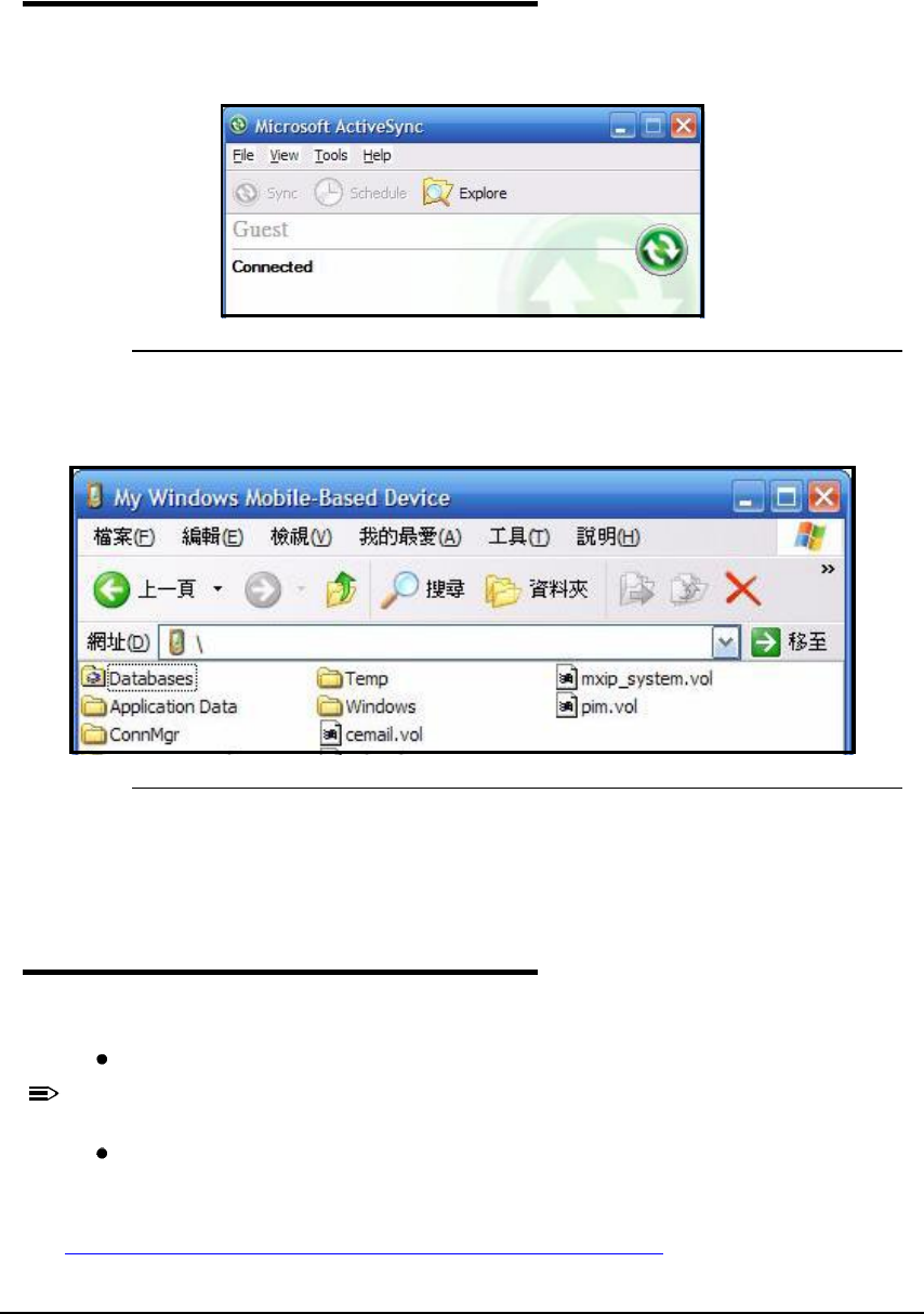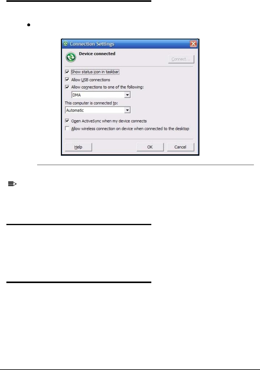 based on the communication cable. ActiveSync will usually set up a USB connection if using