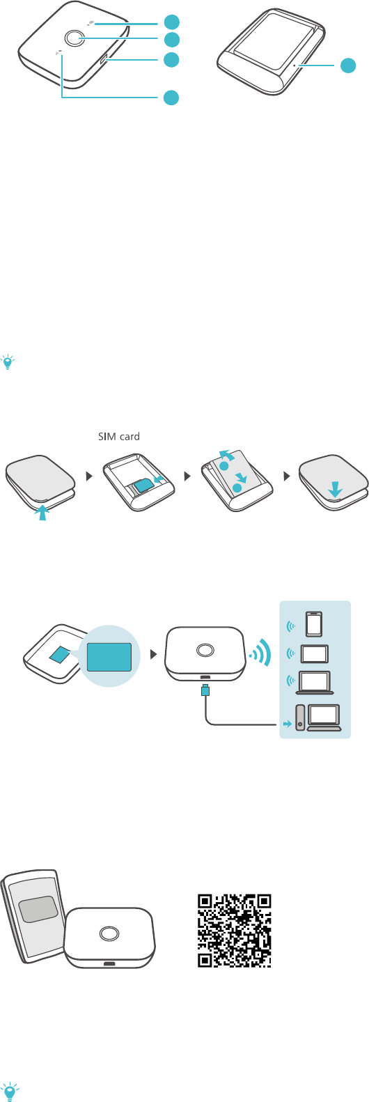 Press and hold to restart your Mobile WiFi and restore it to its factory