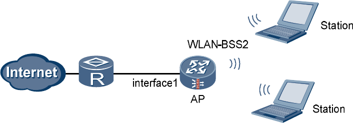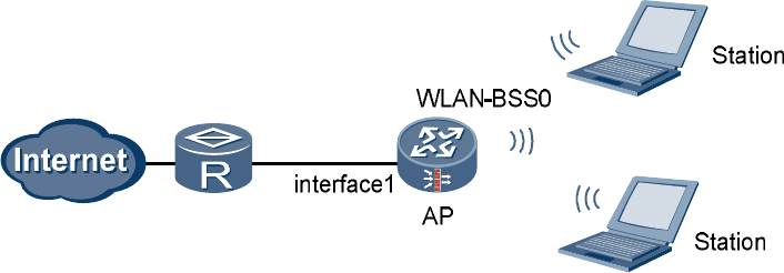 Networking diagram of configuring a WLAN (Plain service class)