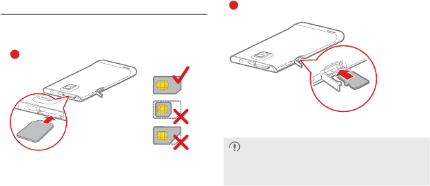 Install the USIM card or microSD card as shown in the