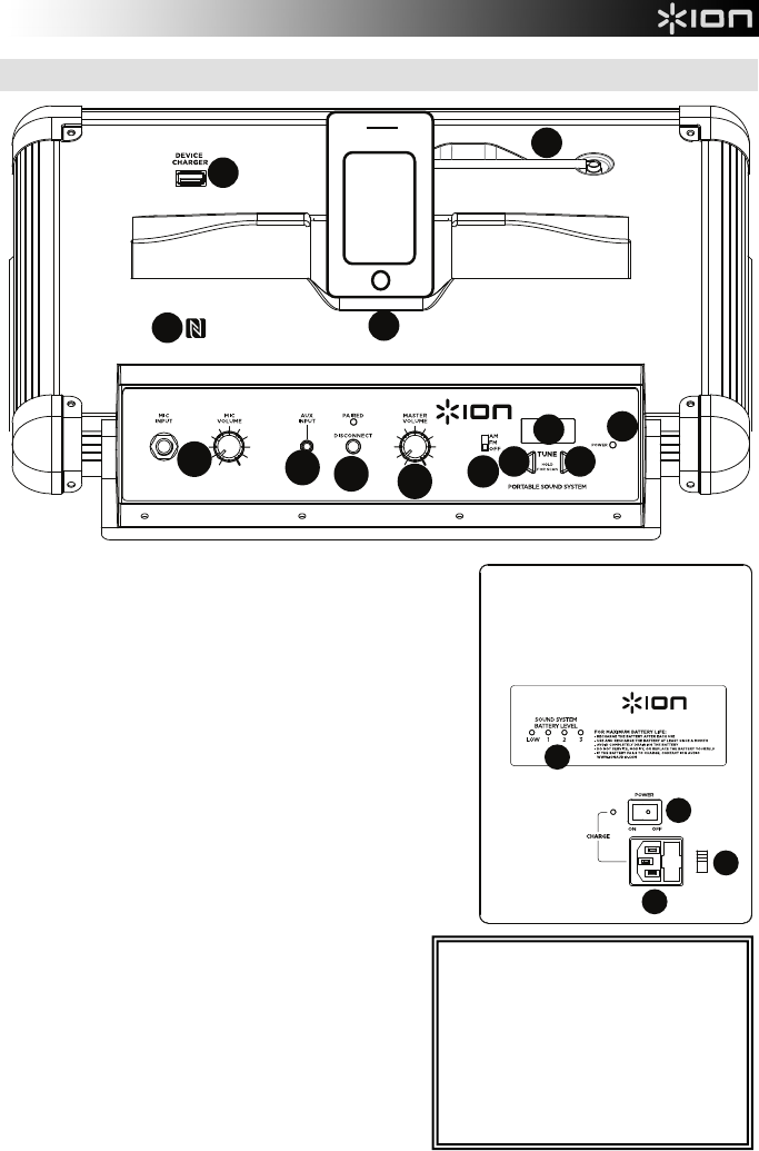 • It is acceptable to leave your sound system plugged in. This will not overcharge the battery.