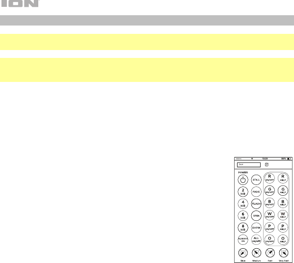 start/stop the motor, set the light timer, select individual colors, and