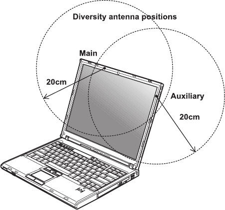 20 cm (8 inches) must be maintained between the antenna for the integrated Wireless LAN Mini PCI