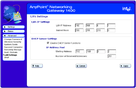The Intel® Anypoint® Networking Gateway 1400 User’s Guide as well as the