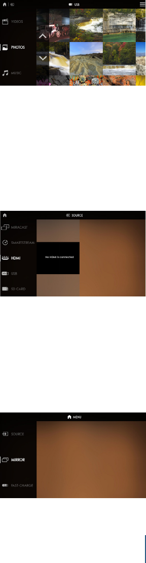 Sources USB, SD Card, HDMI, Miracast™, SmartStream,