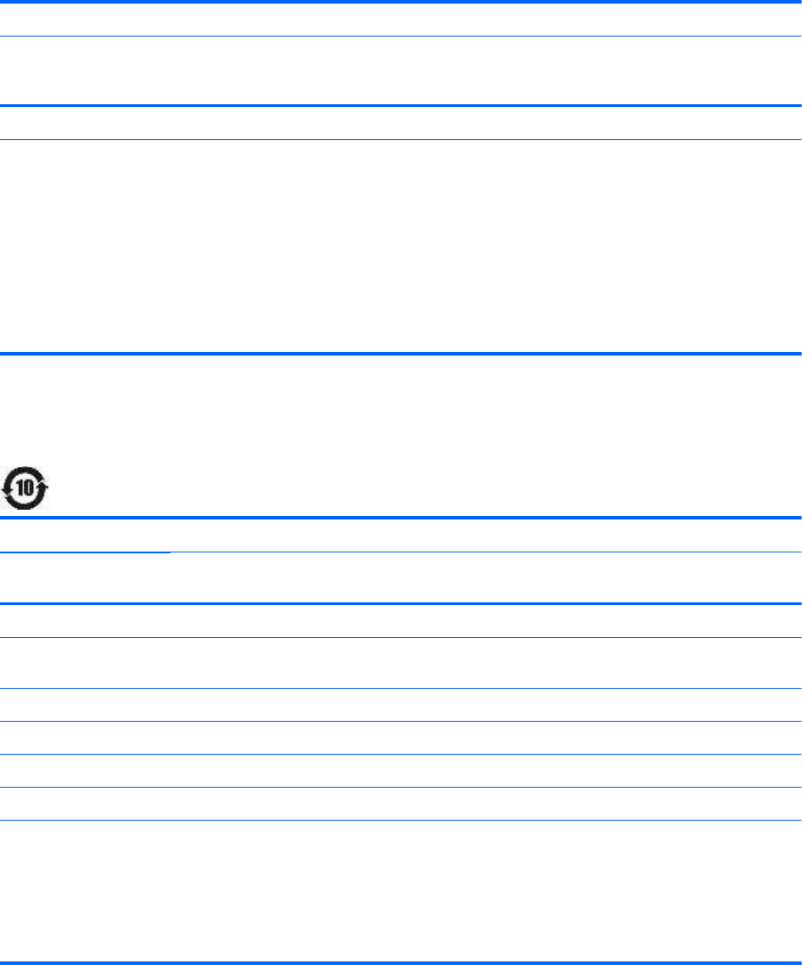 表中标有“X”的所有部件都符合欧盟 RoHS 法规“欧洲议会和欧盟理事会 2003 年 1 月 27 日关于电子电器设备中限制使用某