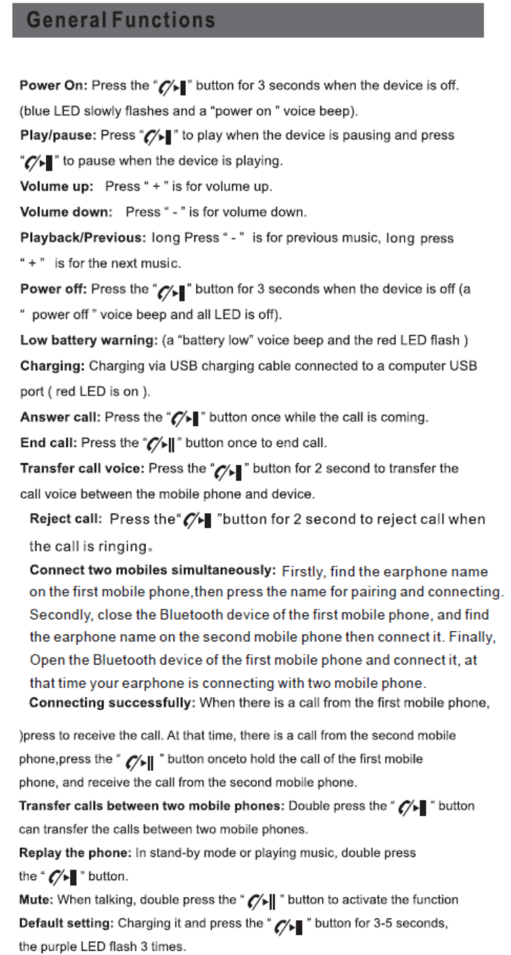 KINGSTAR KS-BTER01 Wireless Earbuds User Manual Manual