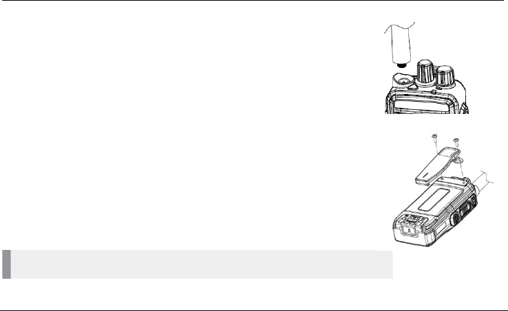attached. Transmitting without an antenna may damage the radio. Only use a Kirisun approved