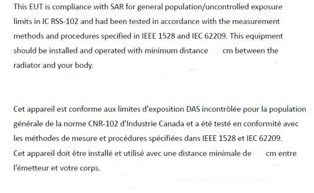 This product is compliance to IC RF Exposure requirements and refers to IC website