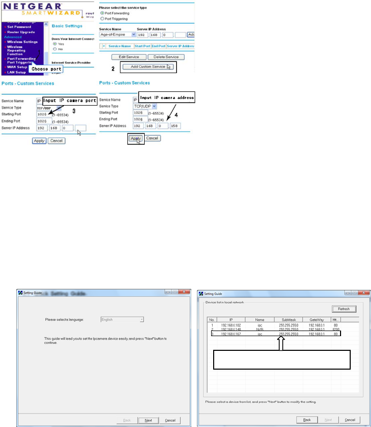 Note: if an IP Camera and a PC connected directly, PC IP address to use manual distribution methods, and the IP