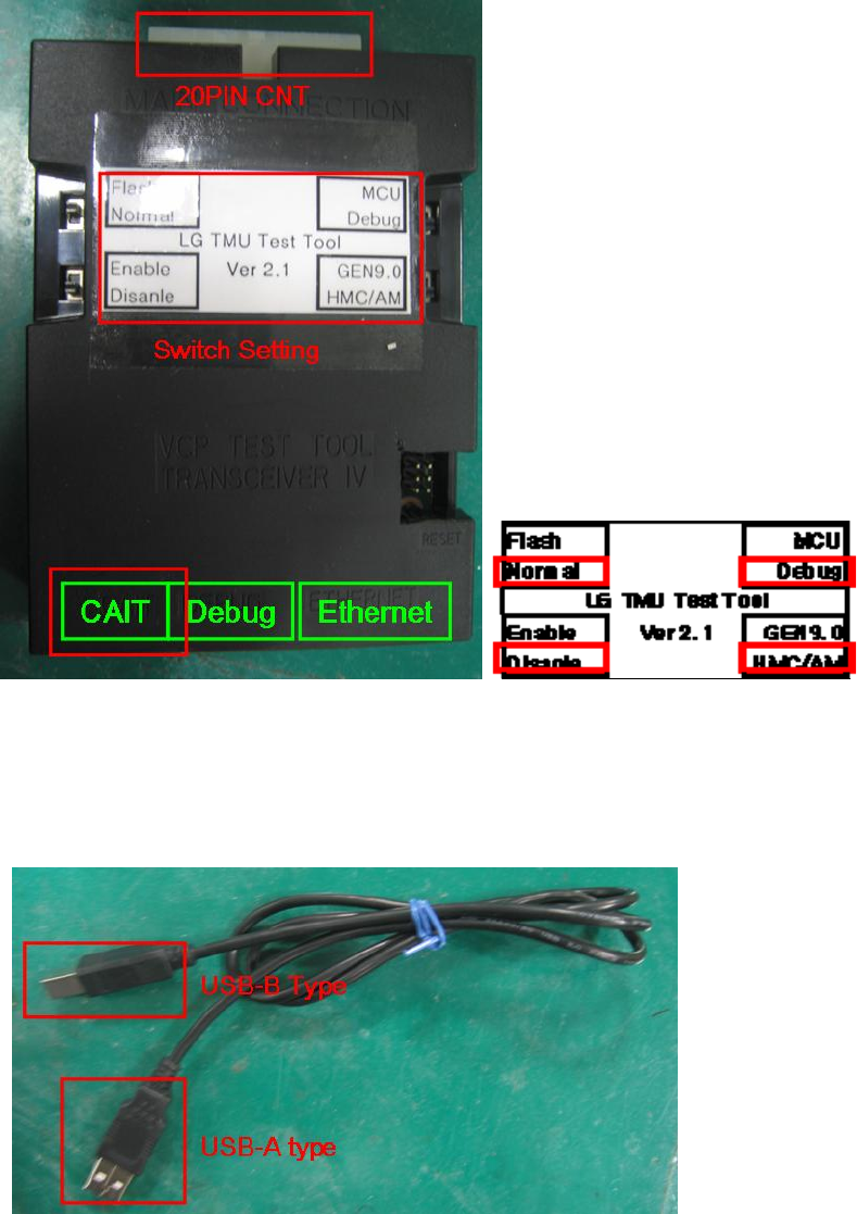 - CAIT port in the LG TMU Test tool should be connected to PC with USB cable as