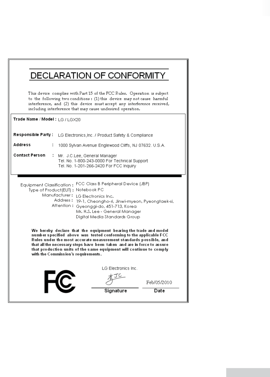 LG Electronics USA NT-LGX20 Notebook PC System User Manual LGX20 for system pd