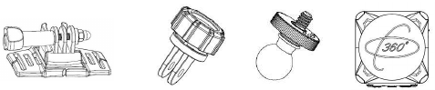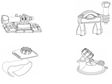 There are four kinds of mounts packaged in this camera as below. A is helmet mount, B