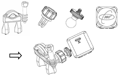 There are four kinds of mounts packaged in this camera as below. A is helmet mount, B