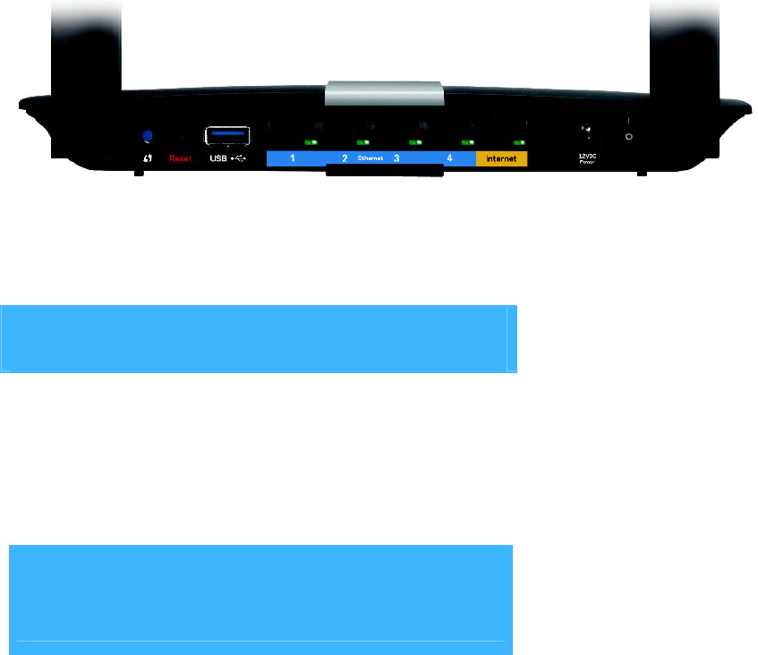 Ethernet ports—Connect Ethernet cables to the blue gigabit (10/100/1000) ports and to wired Ethernet network devices.
