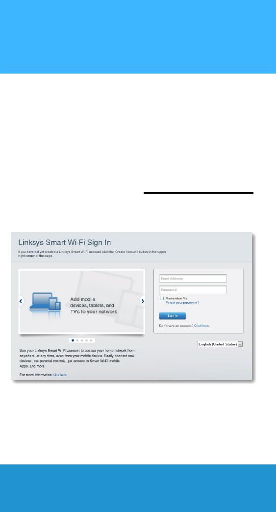 At the end of setup, follow the on-screen instructions to set up your Linksys Smart Wi-Fi account. Use Linksys Smart Wi-Fi to