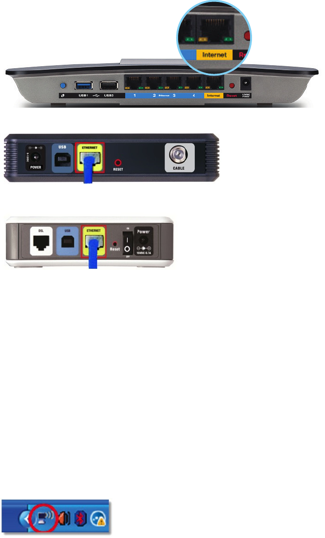 Connect the Internet cable from your modem to the yellow Internet port on your router. Wait until the power light on the front of