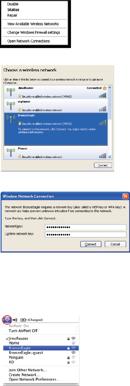 Click the wireless network name of your Linksys E-Series router (BronzeEagle in the example).