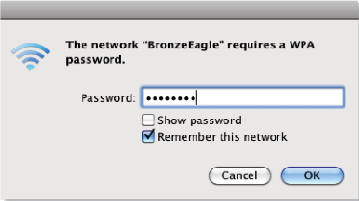 Type your wireless network password (Security Key) into the Password field, and click OK.