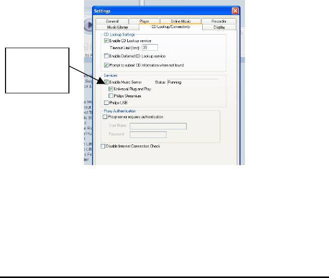 tab under the settings menu and click on the check box “Enable Music Server”.