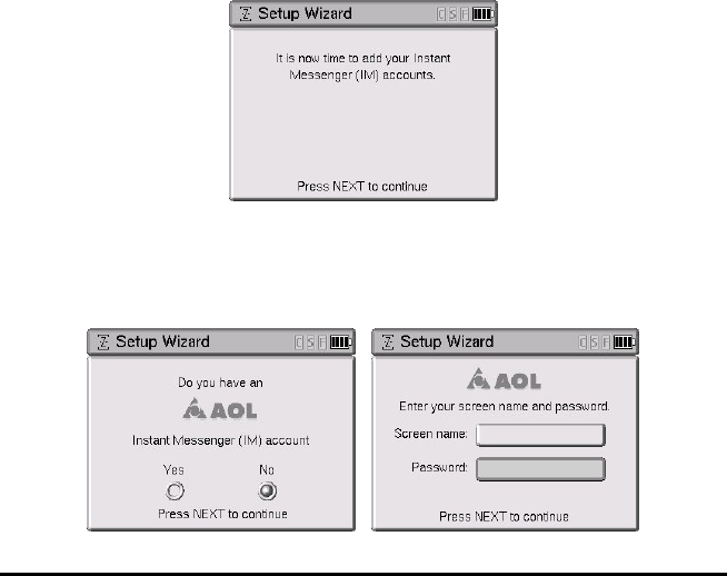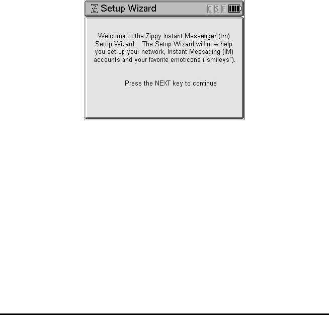 The first time you turn on your Zippy Instant Messenger the Setup Wizard will guide you